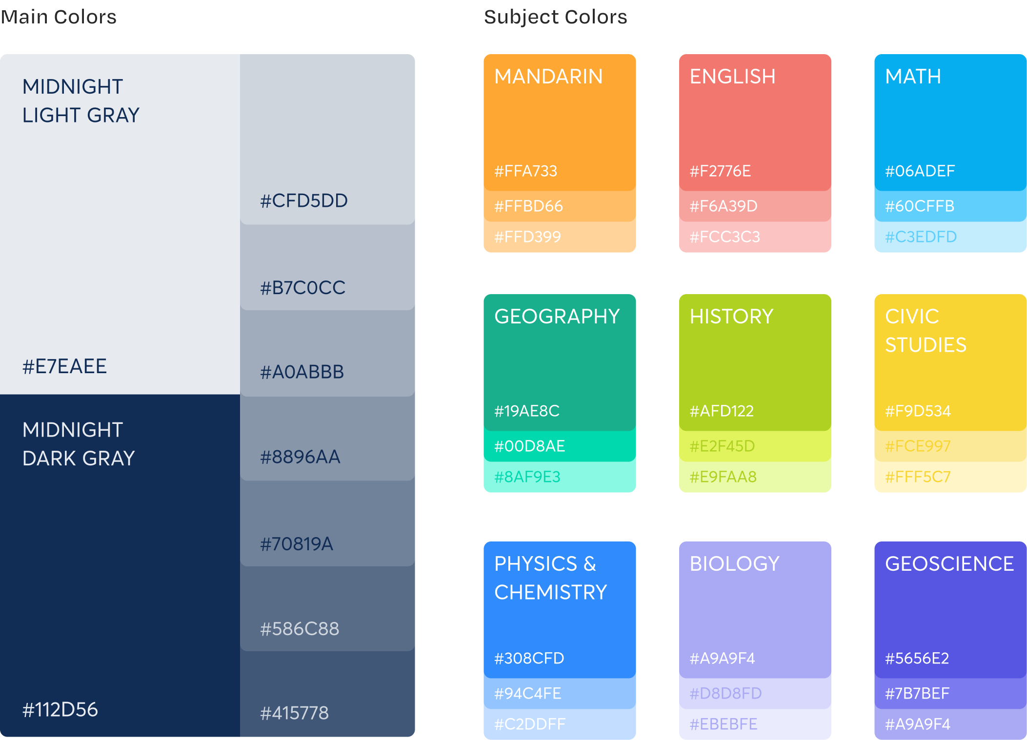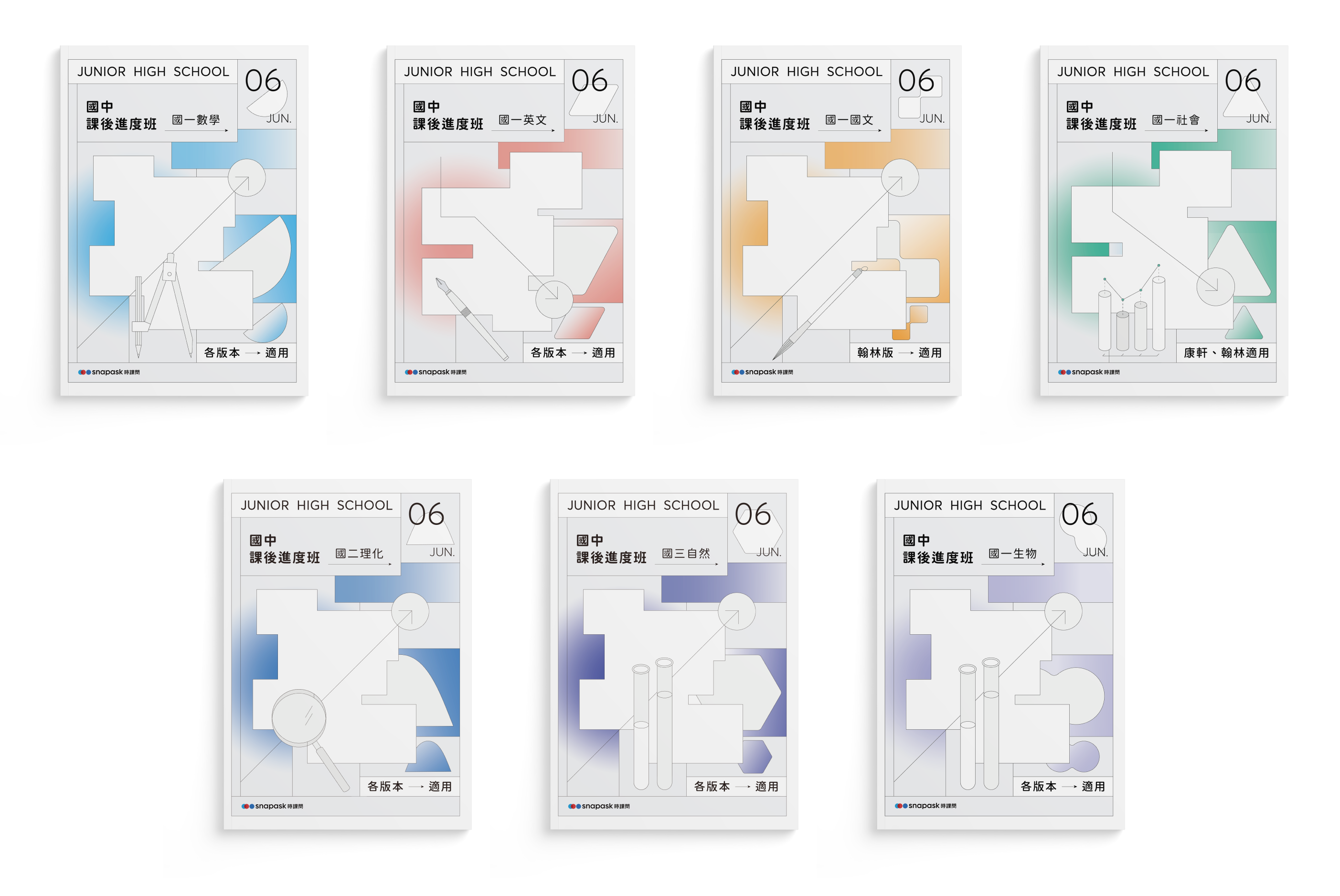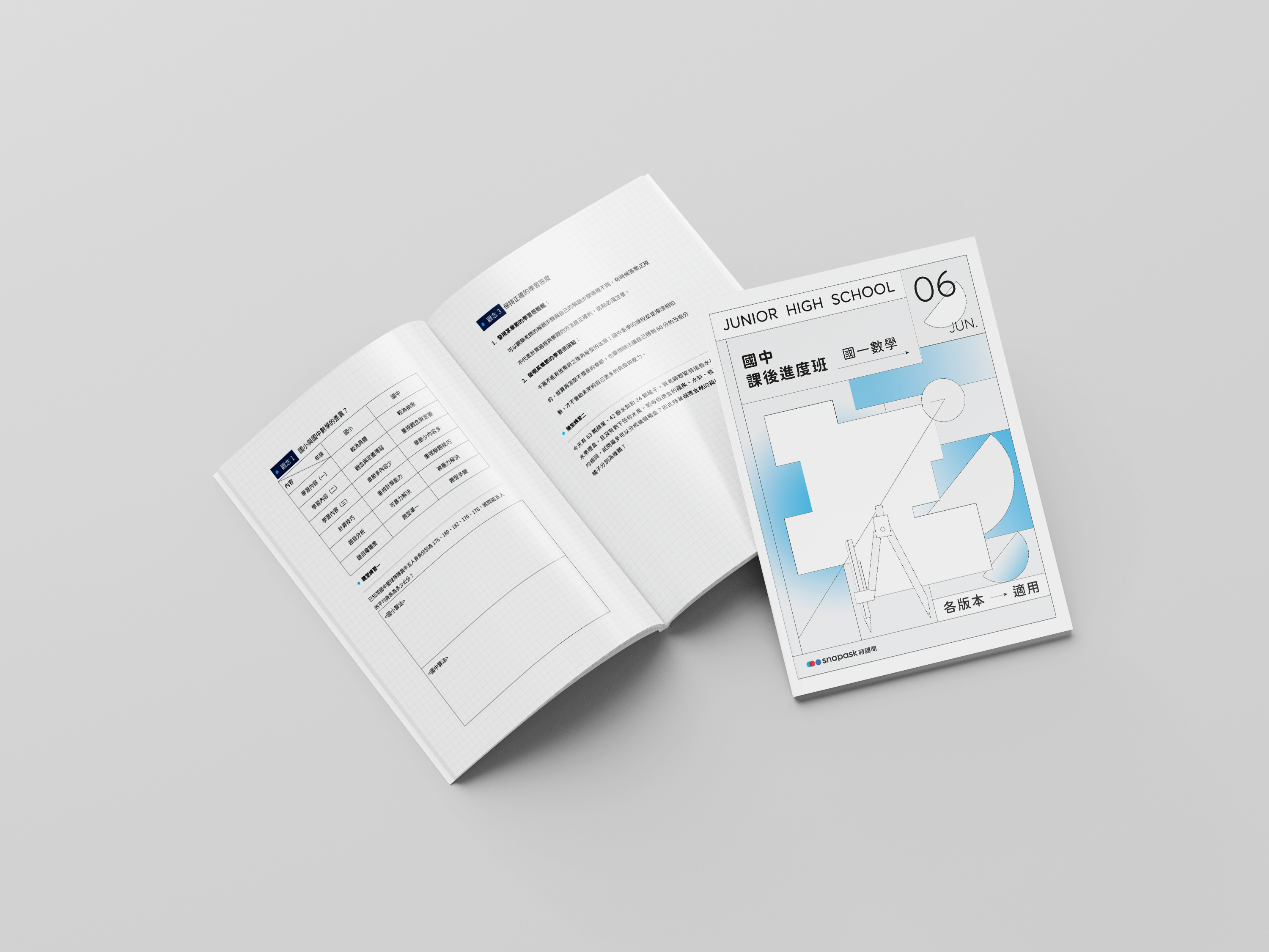 For each course, students receive both physical and digital textbooks for note-taking and practice. The design process includes creating editable page templates for tutors, developing subject-specific covers based on color schemes, and ensuring color accuracy across both digital and printed versions.