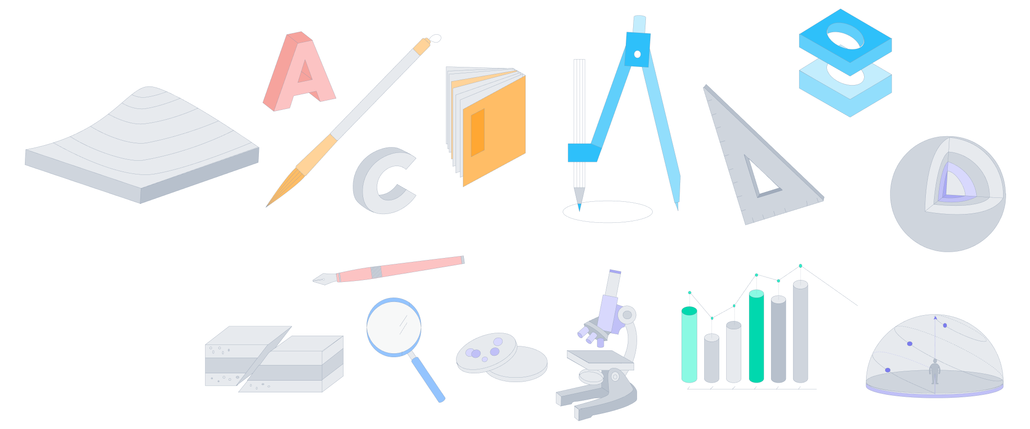Created subject-specific illustrations that can be applied across multiple materials, including course textbooks, marketing assets, and website design.